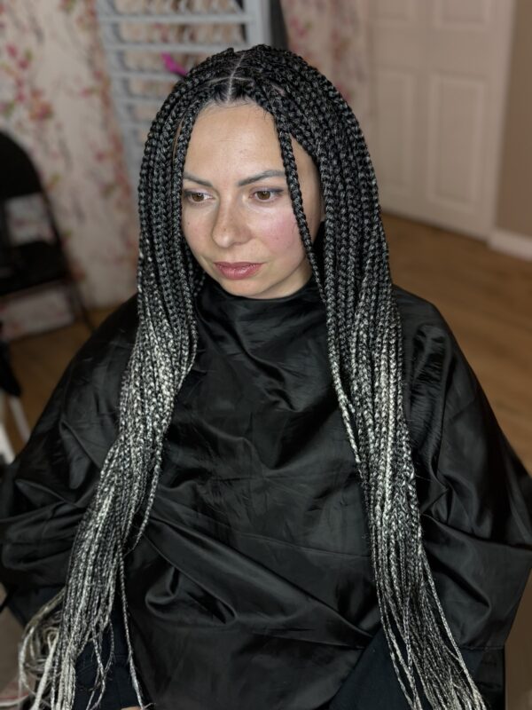 For this style, we use braiding extensions to start the braid from the scalp which make the braid big from the root